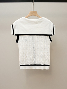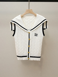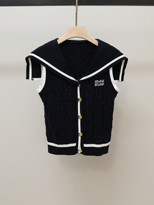 深圳南油高端女装秋季新款小香风减龄撞色海军领无袖针织衫开衫女
