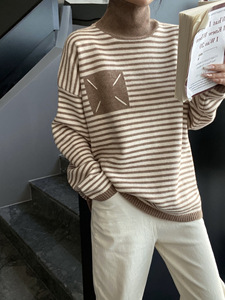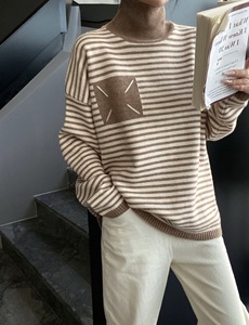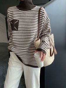 跨境25年秋冬高领宽松百搭针织套头毛衣慵懒风打底衫女装上衣外穿