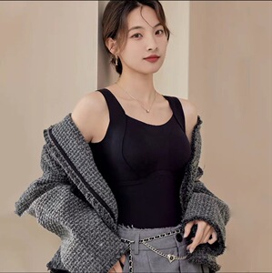 羊绒蚕丝保暖背心女加绒加厚秋冬季带胸垫爆款女士一体式打底背心
