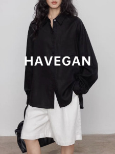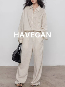 与间HAVEGAN/天丝亚麻宽松长袖衬衫女慵懒老钱风2025新款防晒上衣