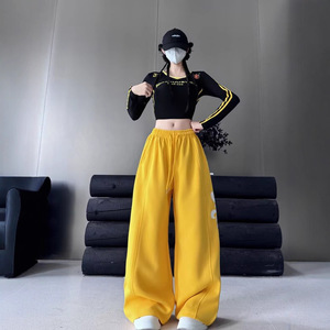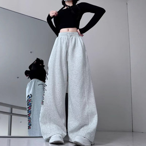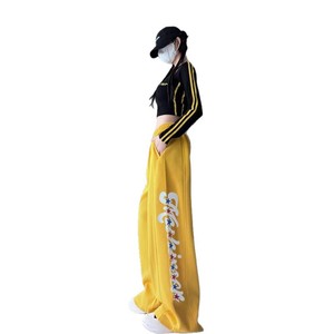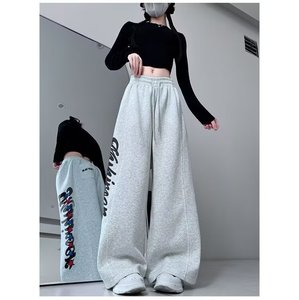 侧边字母印花纯色运动卫裤女美式复古宽松显瘦阔腿嘻哈爵士弯刀裤