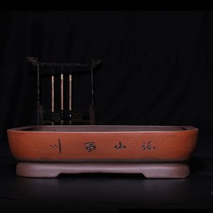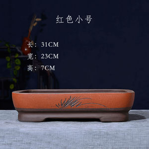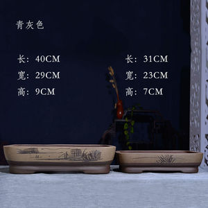 上水石底盘紫砂长方形盆景花盆无孔盆水底假山造景盆陶瓷吸水石盆