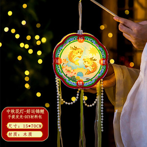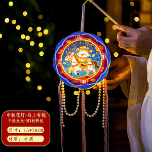 中秋diy灯笼卡通手提木质花灯手工材料包发光灯笼玉兔灯批发摆摊