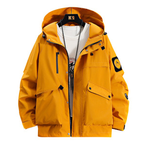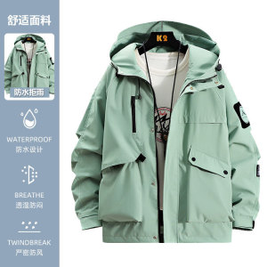 夹克男连帽外套情侣款冲锋衣男春秋季工装外套男女同款防风