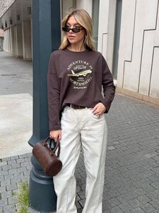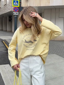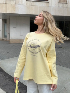 100%纯棉长袖t恤夏季新款休闲简约潮流别致设计感宽松通勤上衣女