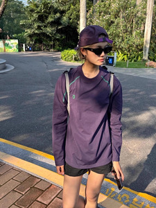 葡萄紫色防晒速干长袖t恤女款夏透气凉感运动上衣羽毛网球骑行服