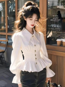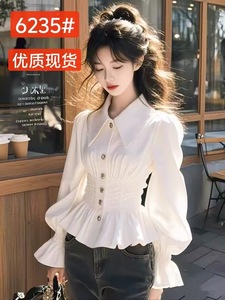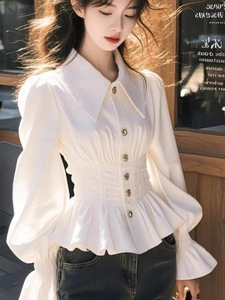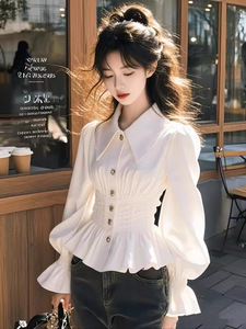 甜美温柔风白色高级感长袖衬衫女装春秋法式收腰显瘦时尚洋气上衣