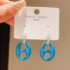 复古滴油锆石猪鼻子几何耳扣耳环时尚简约小众气质高级感耳饰女