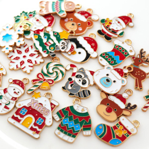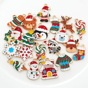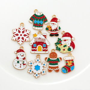 圣诞节圣诞老人手套袜子姜饼人滴油合金diy饰品配件耳环吊坠挂件