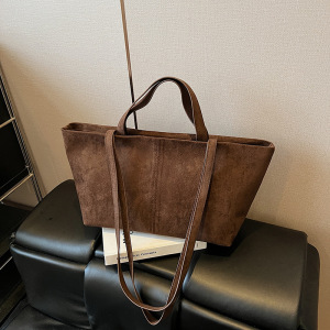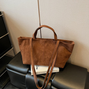复古早秋轻奢小众手提托特包包女大容量百搭麂皮绒通勤单肩腋下包