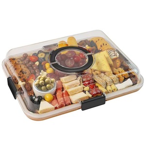 竹木托盘带盖果蔬拼盘熟食板分格点心餐盘家用派对餐盘实木牛排盘