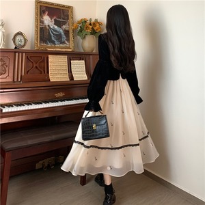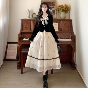 大码法式在逃公主丝绒连衣裙女春秋胖mm减龄显瘦假两件别致内搭裙