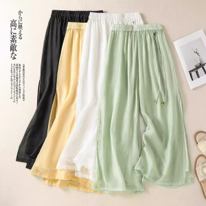今年夏季新款百搭民族风棉麻休闲裤阔腿裤宽松裤子垂坠感大码女装