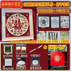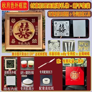 【大尺寸外框37*37cm】-秋月色外框-大喜新婚快乐肌理画套装