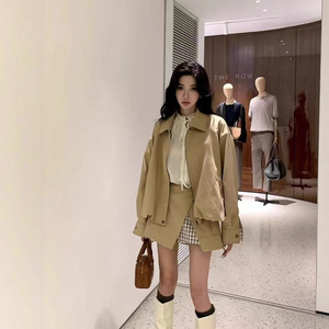 Barb chill翻领夹克短外套女早秋卡其色套装不规则工装风半身裙