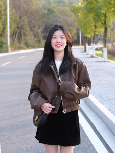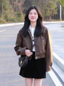 棕色皮衣外套女短款2025新款今年流行高级感小个子美拉德pu皮夹克