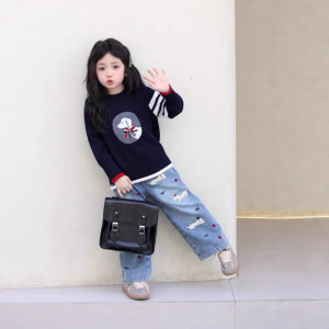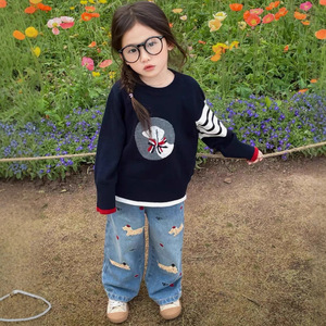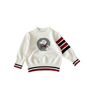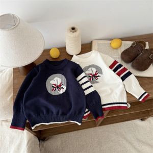儿童毛衣秋冬长袖圆领套头针织衫男女宝宝卡通小狗四条杠毛衣代发