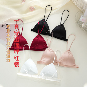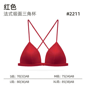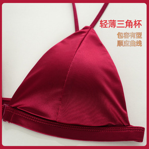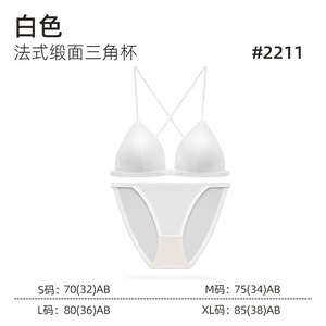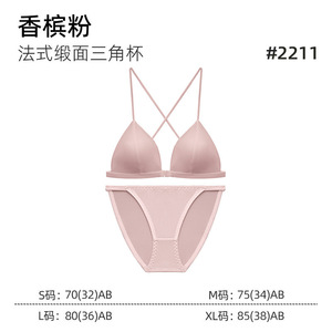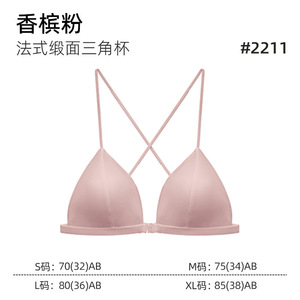 原版法式缎面三角杯前扣美背薄款无痕透气新娘文胸套装:定向