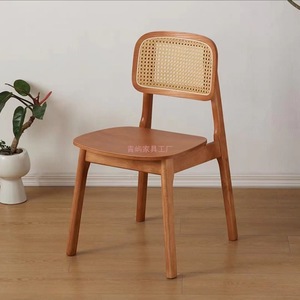 实木北欧餐厅民宿家用餐椅藤椅简约休闲客厅靠背椅现代藤编椅子