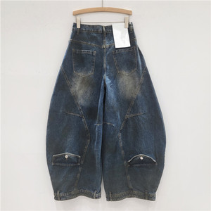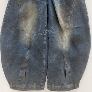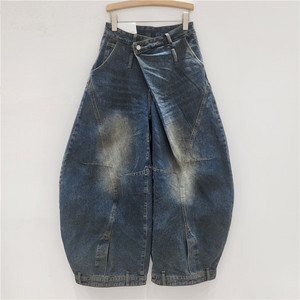 美式复古重工不规则折叠牛仔弯刀裤女秋季辣妹小众宽松阔腿镰刀裤