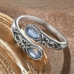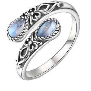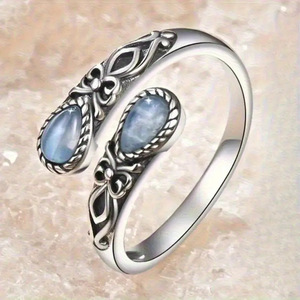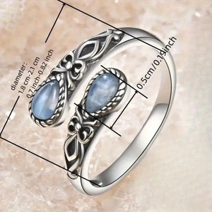 跨境复古风泰银欧式戒指女开口可调节水滴仿月光石流行民族风首饰