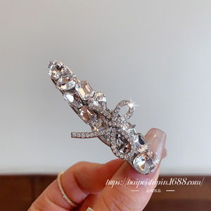 精致满钻水晶新款发夹高档半扎发卡一字夹时尚弹簧夹气质横夹发饰