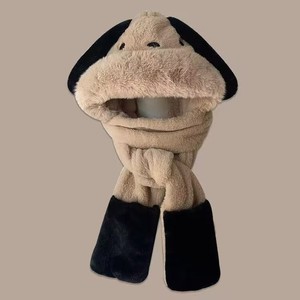 新款可爱毛绒帽子围巾手套一体帽女秋冬季卡通保暖骑车护耳帽帕恰