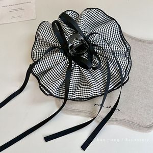 【黑色】丝带双面格子布艺抓夹