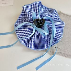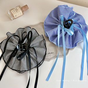 【蓝色】丝带双面格子布艺抓夹