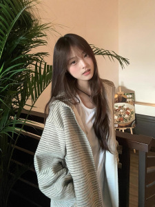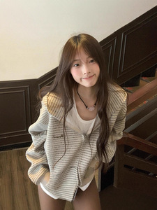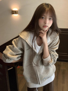 2025秋季新款条纹连帽拉链外套百搭小众休闲宽松休闲美式开衫卫衣