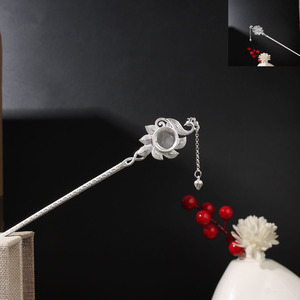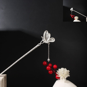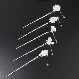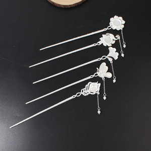 2025新款发簪空托diy镶嵌老绣片苗绣花簪子女士蝴蝶发簪空托底托