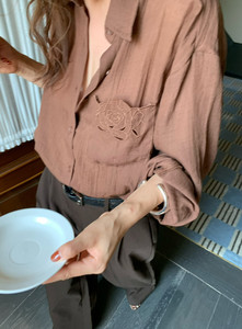 2025秋季新款 松弛有度 老钱风棉麻长袖衬衫女百搭通勤绣花衬衣