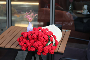 绕韵新款手工编织成品玫瑰花披毯闺蜜女友情人节礼物鲜花圆形披肩