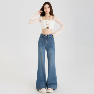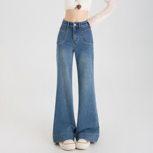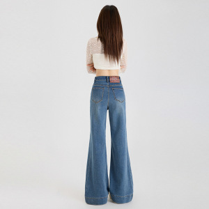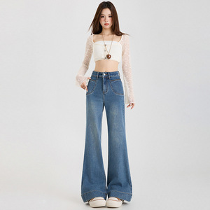 稚橘#美式复古水洗辣妹弹力微喇牛仔裤女高腰显瘦潮流百搭喇叭裤