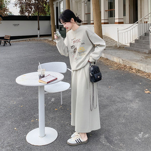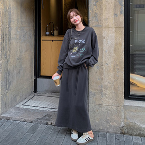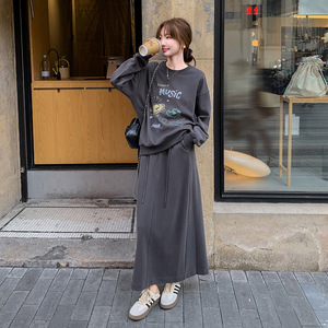 2025时尚休闲清新半身裙套装秋季新款圆领宽松ins卫衣两件套减龄