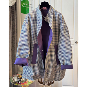 高级感两面穿时尚格子长袖风衣外套女装春秋新款时尚立领上衣百搭
