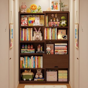 全实木走廊书架可伸缩书柜储物柜一体靠墙置物架家用过道尽头书架