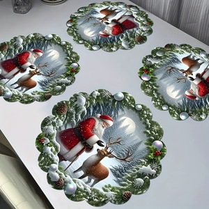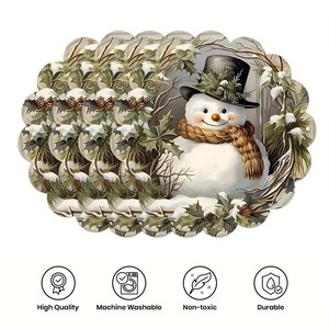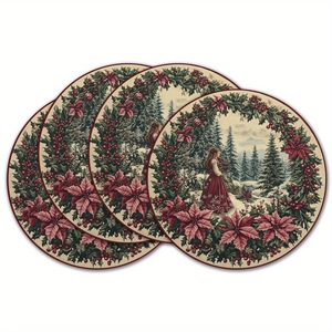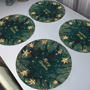 亚马逊temu新款热销民族风圣诞节圆形波浪边亚麻印刷餐垫可定 制