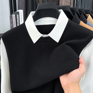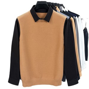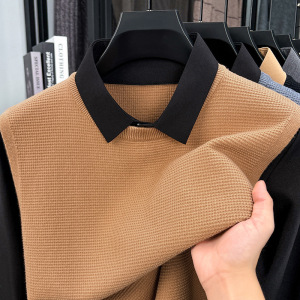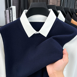 跨境外贸新品男士针织衫衬衫领假两件加厚保暖时尚百搭打底衫毛衣