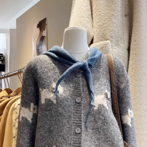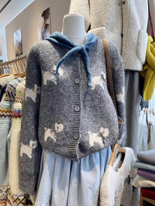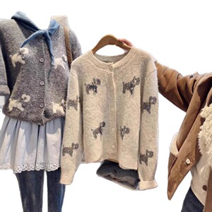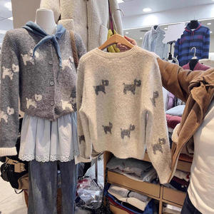 十三行慵懒风洋气减龄毛衣外套女装秋冬季设计感小狗提花针织开衫