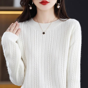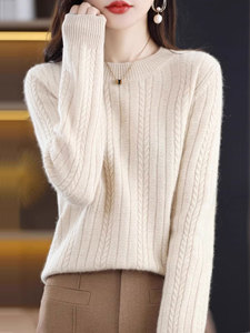 【厂家直供】秋冬新款纯色圆领针织女士毛衣百搭时尚绞花针织打底