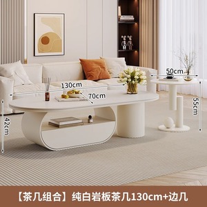 【茶几组合】纯白岩板茶几130*70*42cm+50边几✓☆