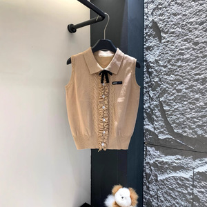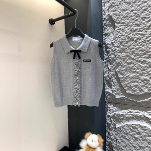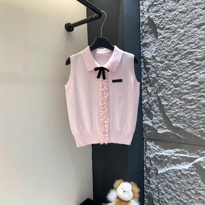 学院风翻领针织毛衣背心女2025夏季新款修身辣妹木耳边无袖上衣