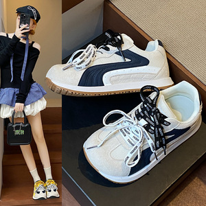 2025秋季增高透气网面鞋子圆头可爱女鞋厚底百搭网鞋运动鞋休闲鞋