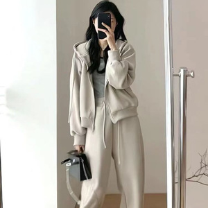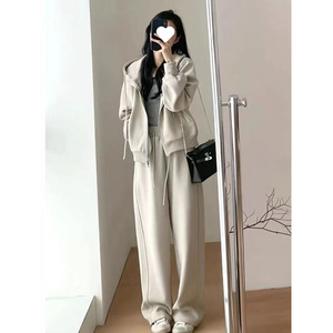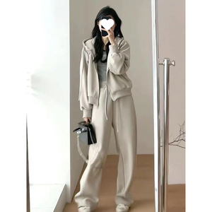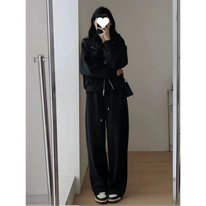 慵懒风秋冬休闲运动套装女主短款外套拖地阔腿裤两件套女盐系韩剧