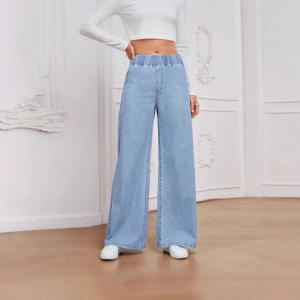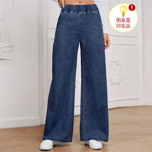 女装弹力休闲宽松大码牛仔纹理图案3D数码印花休闲裤日常简约时尚