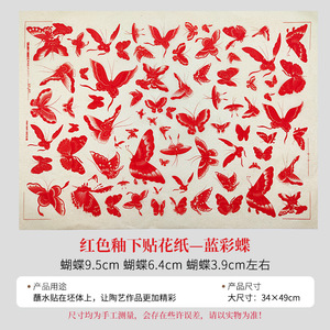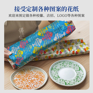 陶艺斗彩色花纸红色黑绿色花纸釉下彩色贴花绿彩色贴花纸拓印纸