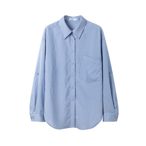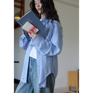 1313知识分子风蓝白竖条纹长袖衬衫2025早秋宽松显瘦透气休闲衬衣