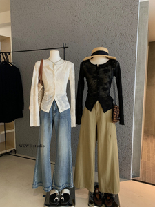 WGWE法式肌理感提花微透上衣2025秋季设计感修身圆领长袖衬衫W688