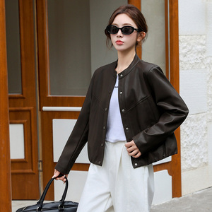 韩版短款皮衣外套女2025年秋季新款百搭宽松小香风免洗植鞣皮夹克